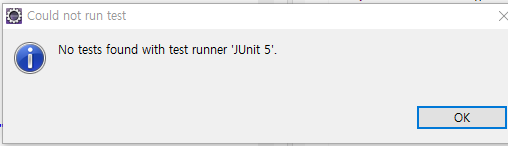 No tests found with test runner JUnit 5 로 에러가 발생했다.