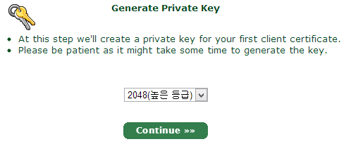 18. 비공개키를 발급 받는다. 비공개키는 직접 생성할수도 있지만 startssl이 제공하는 키를 사용하면 편리하다.