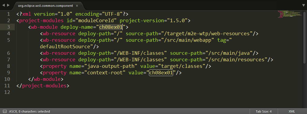 해당 프로젝트 폴더의 org.eclipse.wst.common.component 파일 수정