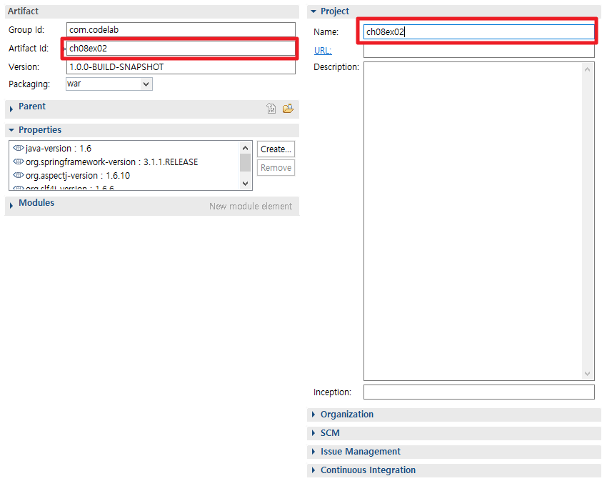 프로젝트 선택 >> 마우스 우클릭 >> [Refactor] >> [Rename Maven Artifact..]