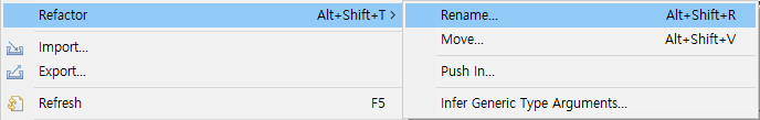 패키지명 선택 >> 마우스 우클릭 >> [Refactor] >> [Rename...]