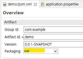 pom.xml의 Packaging을 jar에서 war 파일로 변경하였다.