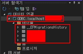 모든 설정이 완료되면, VS 의 [서버 탐색기]에서 - 데이터 연결 - 항목 아래에 데이터 소스가 나열됩니다.