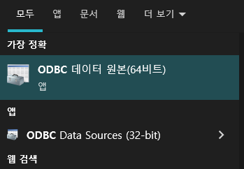 윈도우 검색창에 "ODBC 데이터" 까지 입력하면, 아래처럼 두 개의 항목이 나오는데,