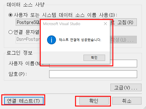 [연결 추가] 창에서도 연결 테스트를 수행해봅니다.