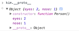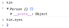 kim에는 eyes라는 속성이 없는데도 kim.eyes를 실행하면 2라는 값을 참조하는 것을 볼 수 있습니다. 위에서 설명했듯이 Prototype Object에 존재하는 eyes 속성을 참조한 것인데요, 이게 어떻게 가능한걸까요??