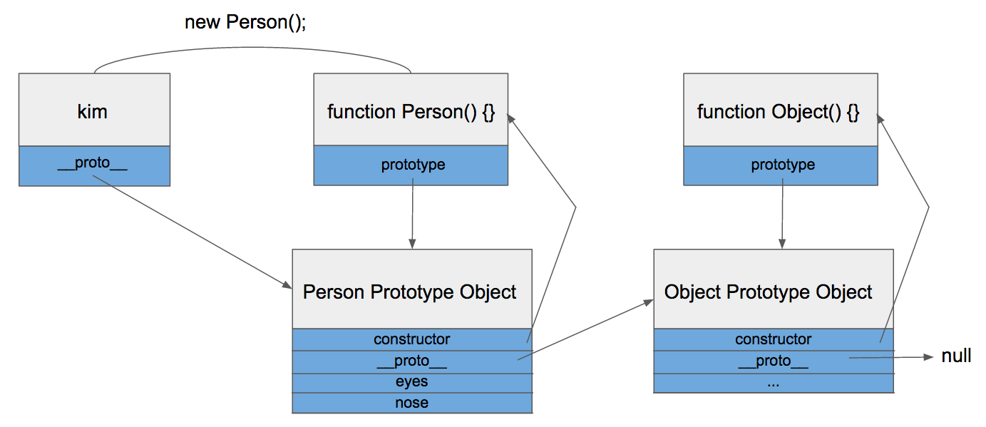 Person.prototype이라는 빈 Object가 어딘가에 존재하고, Person 함수로부터 생성된 객체(kim, park)들은 어딘가에 존재하는 Object에 들어있는 값을 모두 갖다쓸 수 있습니다.